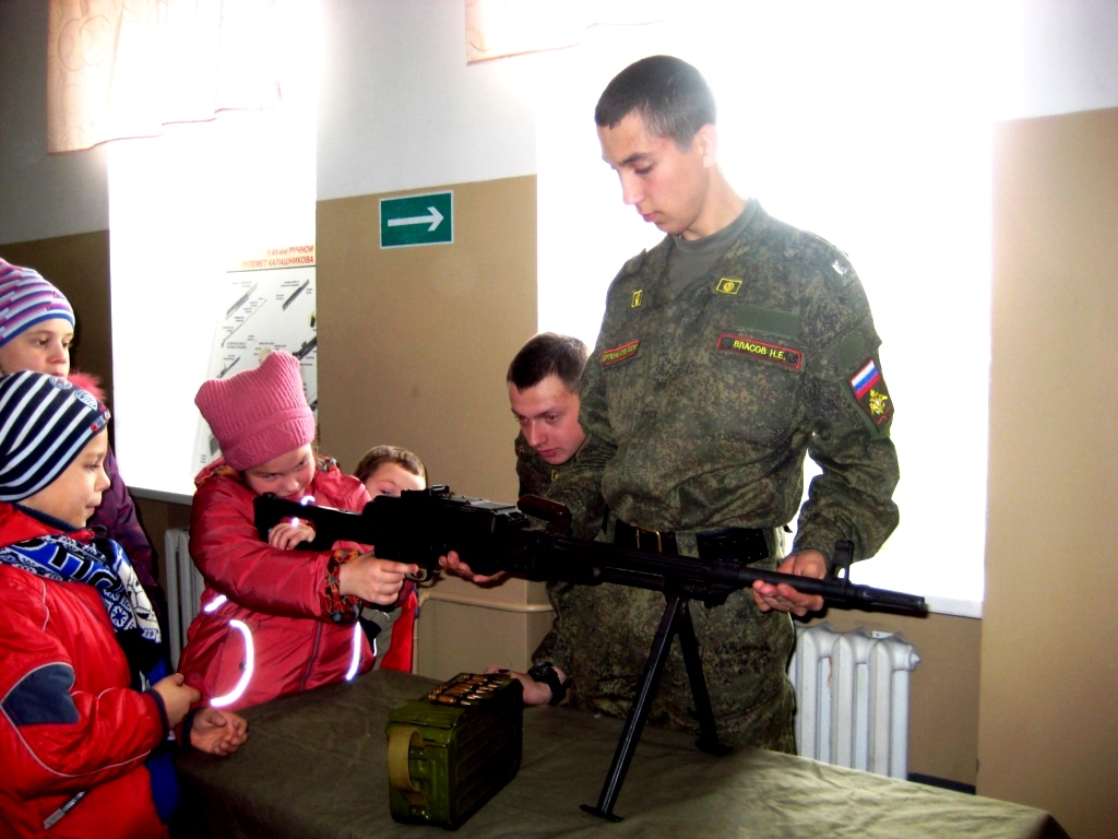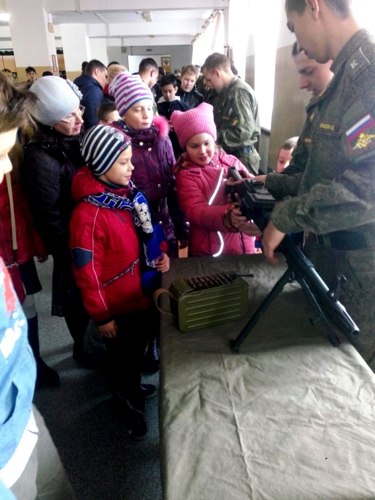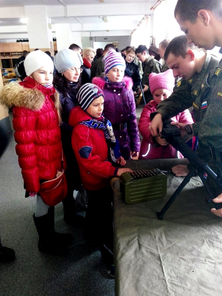 Можно было даже пострелять из оружия. Без патронов, конечно. Я стреляла из автомата, мне очень понравилось. В казарме мы увидели, как живут курсанты, где спят.