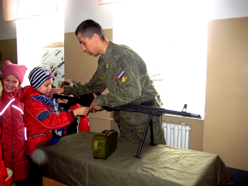 Затем нам показали казармы, где живут курсанты. Здесь же нам показали все виды военной формы: от полевой до парадной. Но самое главное здесь нам показали оружие: от пистолета до гранатомета. Показали, как разбирать и собирать оружие, рассказали, как оно устроено и даже дали самим попробовать пострелять.