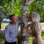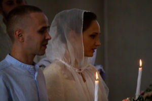 За трапезой они нам рассказали, о том, что знали друг друга еще с 15 лет, так как жили в небольшом городе на севере Тюменской области. Симпатия переросла во влюбленность, они решили пожениться, и уже в браке влюбленность переросла в настоящую любовь. Поэтому к таинству венчания они подошли очень серьезно и обдуманно. Удивительно то, что в день венчания им обоим по 33 года, хотя они не одногодки, но совсем в небольшой период в течении года они становятся ровесниками. Именно в этот период совершилось таинство венчания, а они даже и не думали, и не старались так предугадать.